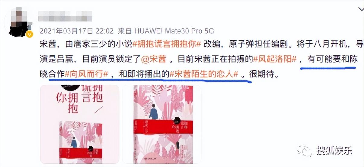 那《向风而行》找过宋茜吗?2021年,的确有传闻说宋茜要拍《向风而行》,但问题是,那时这部剧男主传的并不是王凯,而是陈晓。