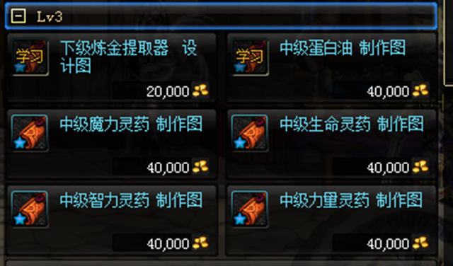 三级的时候,可以去做四级的大师MP或者HP药剂,这个东西拍卖行也可以甩出去的,不算冷门,之所以不去做别的药水是因为一些药水的成本非常高,失败了可以得到的收益更少,比如透明 霸体复活这些非常贵的药水。