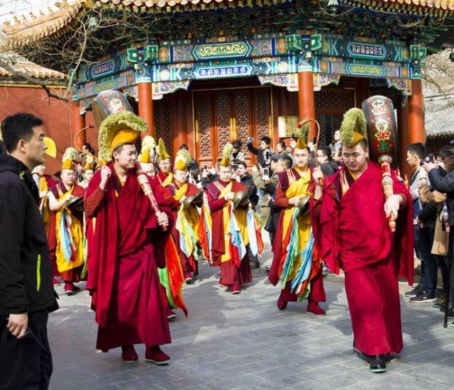 看文字叙述太难?没关系,类似的仪式在雍和宫也有举办,就是老北京人津津乐道的打鬼。传统每年农历的正月底,雍和宫内人头攒动,都会争睹这一“打鬼”的场面。