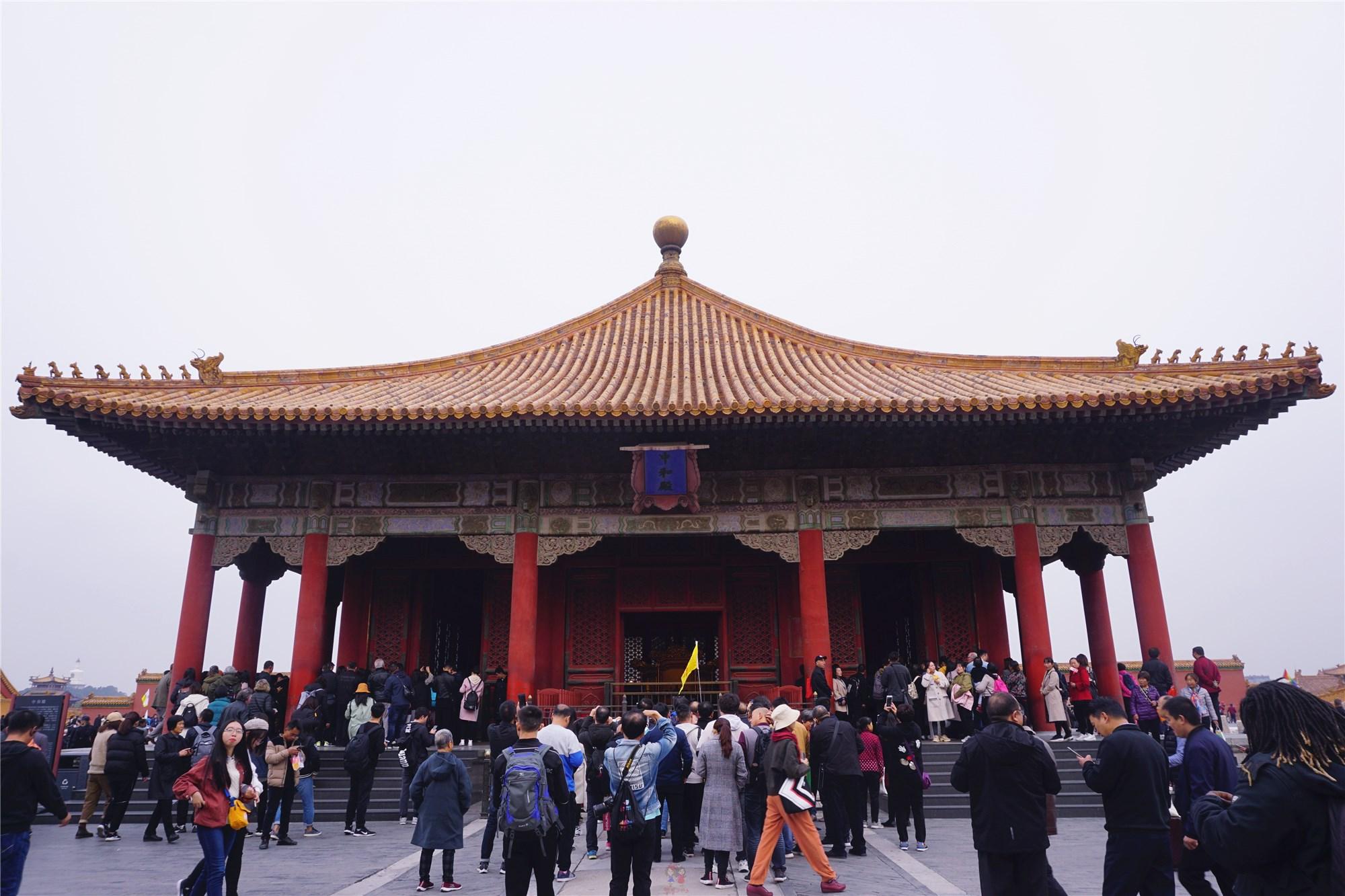 太和殿后是“外朝三大殿”的第二座中和殿,这个亭子造型的宫殿是皇帝从后宫出来后,去太和殿或天坛、地坛等其它地方举行大典前准备和休息的地方,想更多了解中和殿的亲们可点击《世界上最大的休息室和“一亩三分地”的由来》。