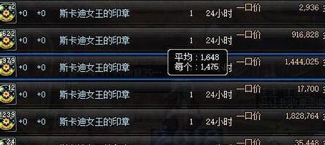 由于是低级材料,斯卡迪女王印章的价格起初并不高。而在起源版本到来之后,它成为了二觉任务的必须品(60个),这也就让它的价格步入了暴涨期。再加上女王印章只有低级图能出产,普通搬砖号并不会选择刻意去刷,所以印章从500涨到1500也不是没有道理的。