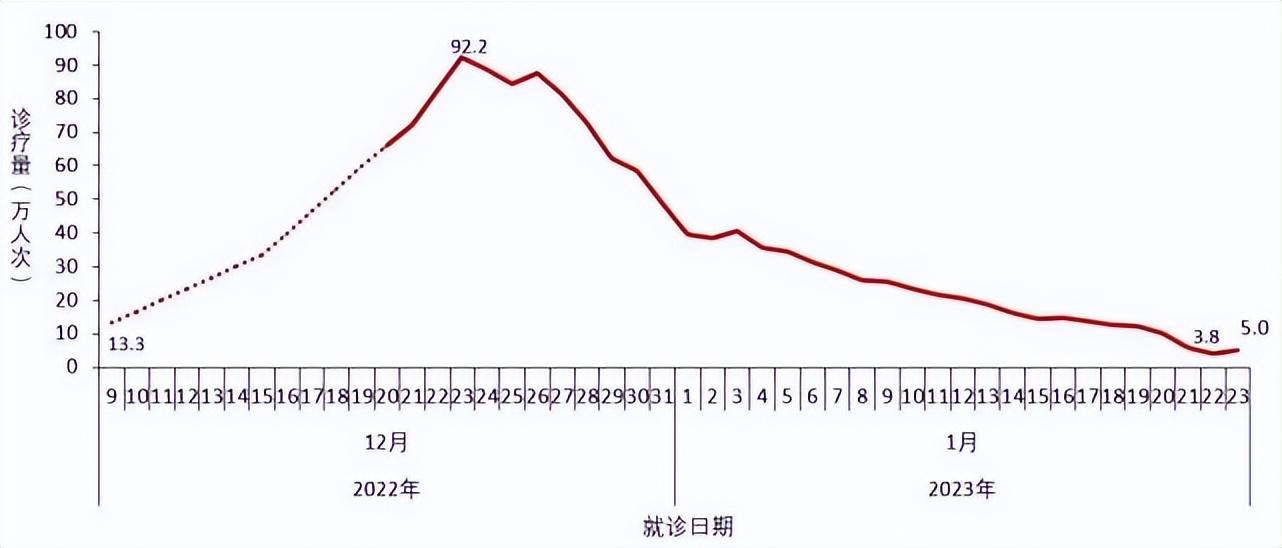 说明:自2022年12月9日起,监测二级以上医疗机构发热门诊诊疗量;12月21日起,增加监测社区卫生服务中心和乡镇卫生院发热诊室诊疗量(不含村卫生室和社区卫生服务站)。